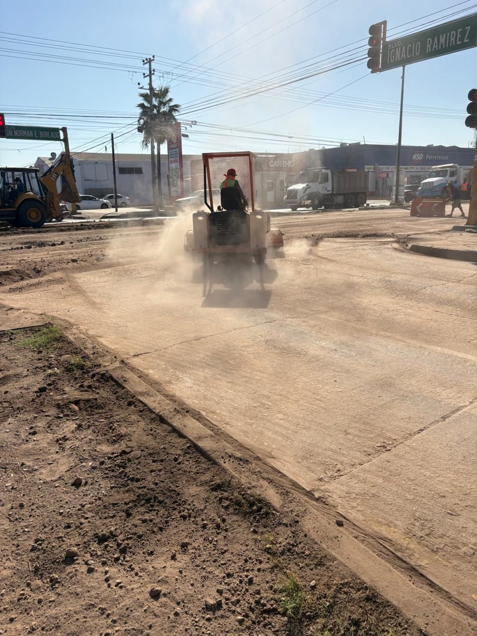 La circulación vehicular fue restablecida en el crucero de calle Norman E. Borlaug y Boulevard Ramírez tras concluir las obras de reparación y pavimentación.